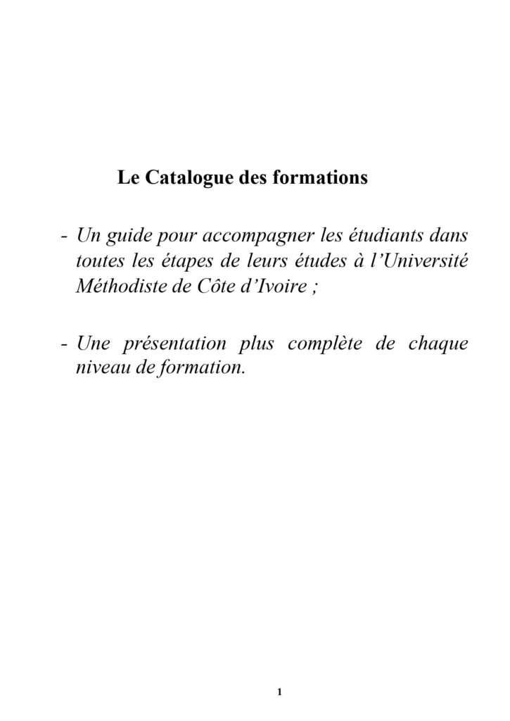 UNIVERSITE METHODISTE DE COTE D'IVOIRE